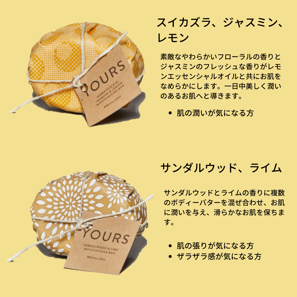 合成防腐剤を含まず、動物実験も行っていません。自然な香りが使う人たちに安らぎをもたらします。天然の手作りボディローションバーで、使い捨てプラスチックの削減にご協力ください。