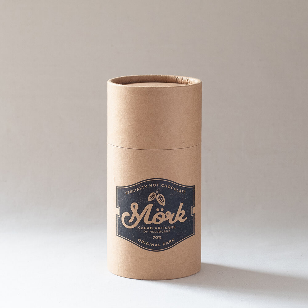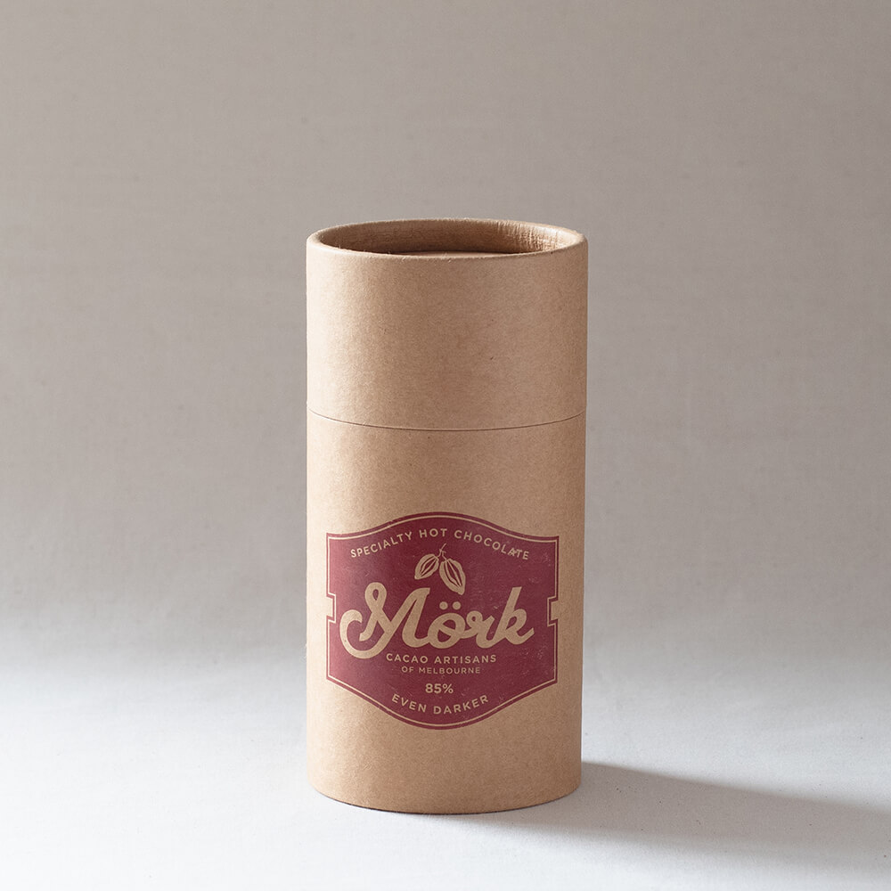 「Mörk」とはスウェーデン語であり、「Dark」という意味です。創業当時は、オーストラリアでは、ホットチョコレートは子供のドリンクと認知されており、カカオ30%〜40%の甘い風味が主流でしたが、私達は70%のカカオブレンドを商品化しました。本製品は、ほんの少しの甘みとシングルオリジンのカカオの風味だけです。従来のイメージとは異なり甘くないチョコレートですが、スペシャルティコーヒーを理解されているバリスタ達により、チョコレートも同様であると認識され、モークホットチョコレートは、カフェのドリンクメニューとして浸透されていきました。日本でも私達のチョコレートドリンクを楽しんでいただけたら幸いです。