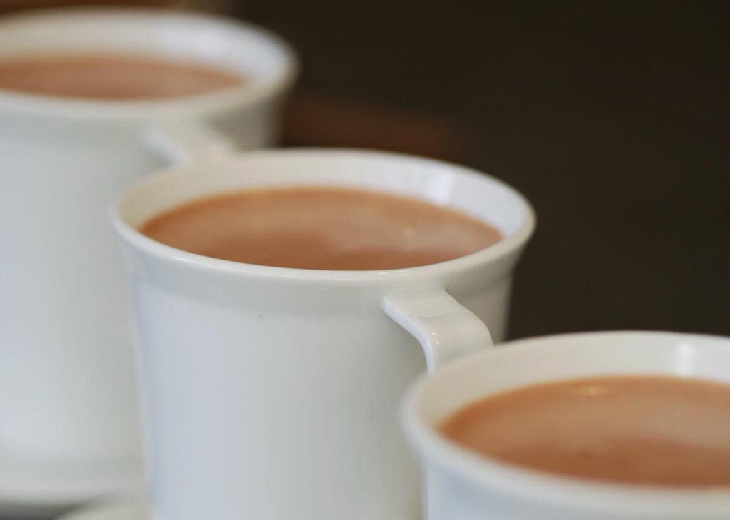 お好みのミルクにモークチョコレートパウダーを加え、泡立て器などでよく混ざった状態になったことを確めて、小鍋など温めるだけで完成です。