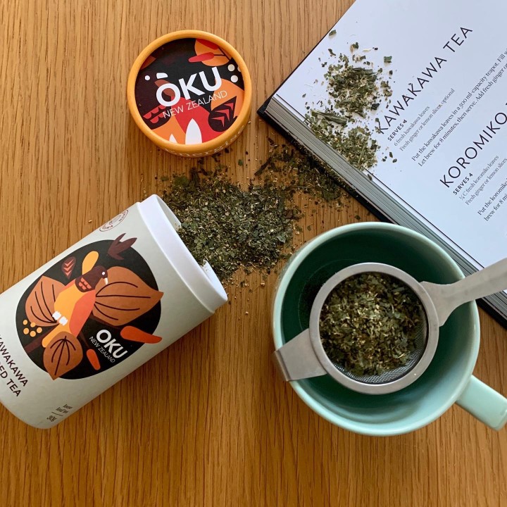 オーガニックを越えた”ワイルド クラフテッド”のカワカワと、煎茶、リコリス、ジンジャーなどを使用したOKU社のブレンドハーブティー。