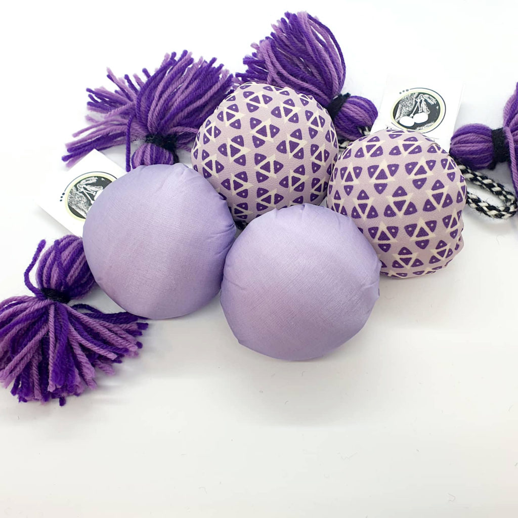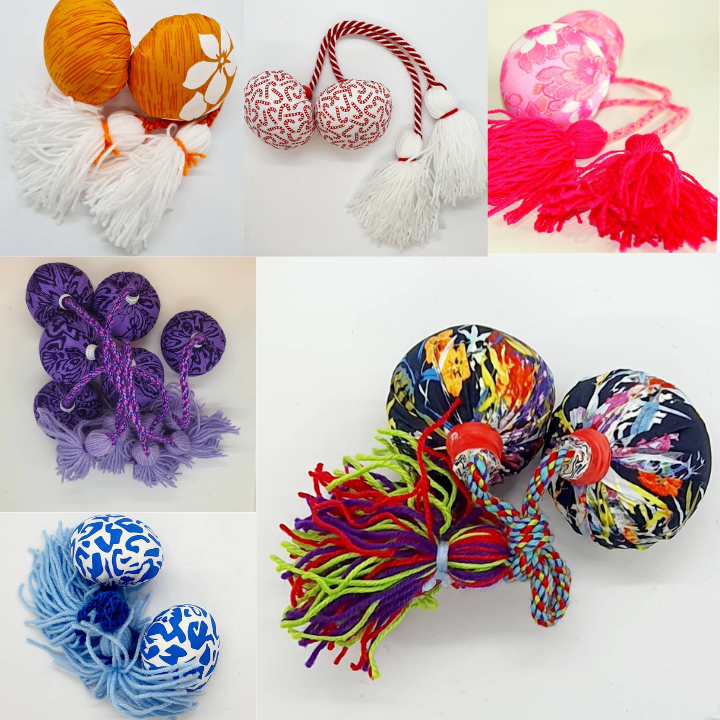 紐の先にあるボールを振ったり、回転させたり、体に当てて音を出したりしてお楽しみください。