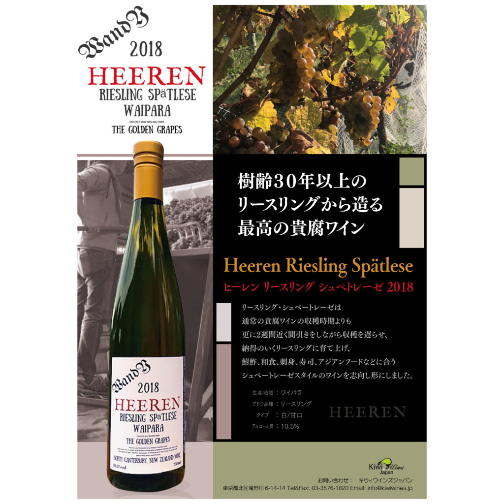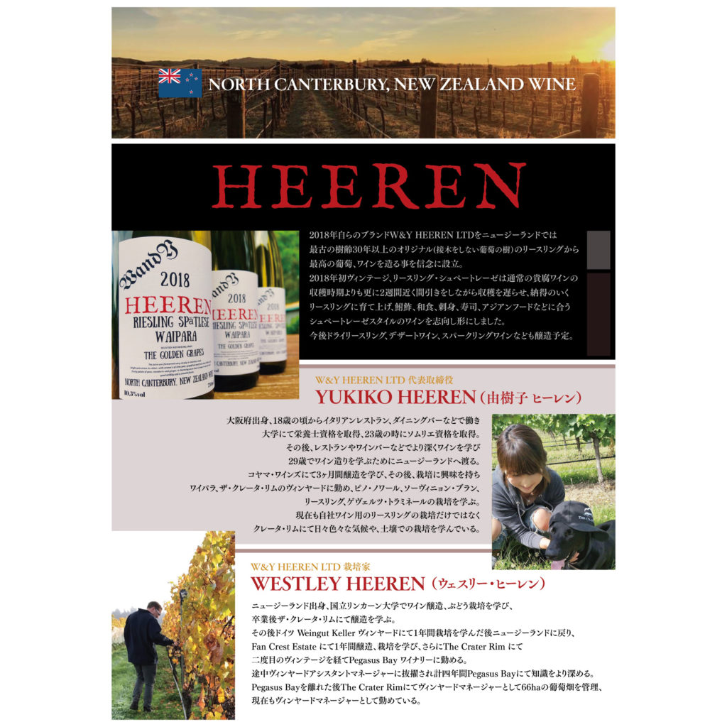 2018年自らのブランドW&Y HEEREN LTDをニュージーランドでは最古の樹齢30年以上のオリジナル(接木をしない葡萄