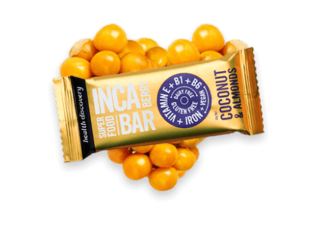 インカベリーの程よい酸味とココナッツの甘い香りがこのバーの特徴です。また、甘みにはハニーではなく、ココナッツネクターとデーツを使用していますのでビーガンの方でも安心してお召し上がり頂けます。