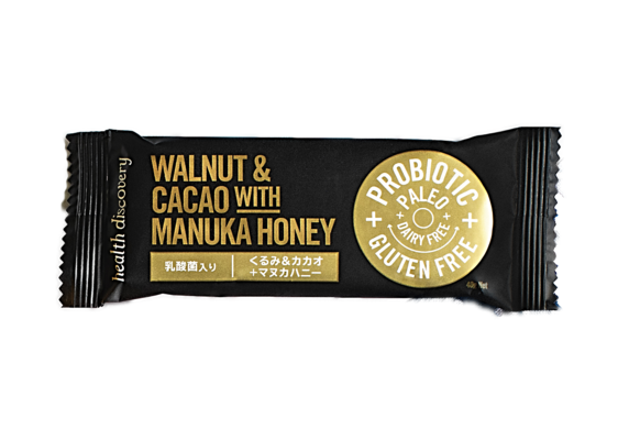 20億個の善玉乳酸菌はじめ、ひまわり・亜麻の種子やくるみなどのナッツ、カカオニブ、ドライフルーツなど、ホールフード各種をマヌカハニーの自然な甘さでまとめたグルテンフリーな1本。健康管理を身体の中からもサポートする新スタイルのプロバイオティックバー 。