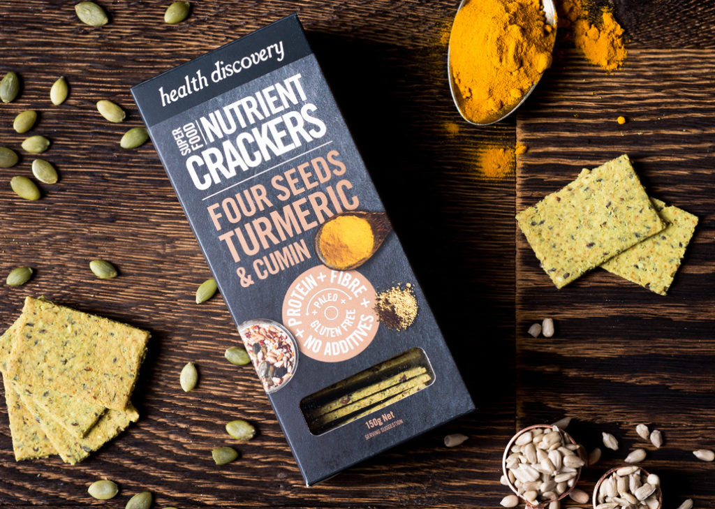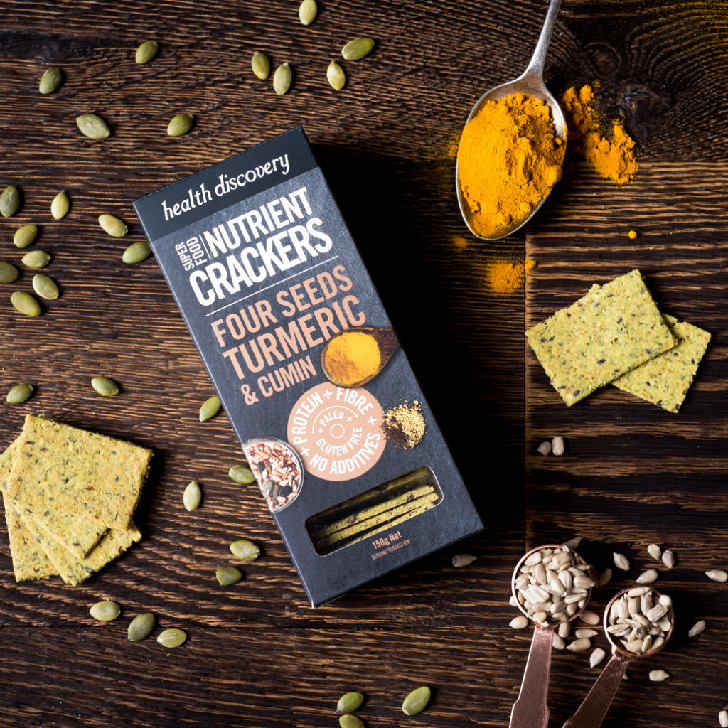 Turmeric, Cumin, Sumac, Flax seeds, Pumpkin seeds, Sunflower and Sesame seeds. Blended with Virgin coconut oil, Coconut Flour and Tapioca flour